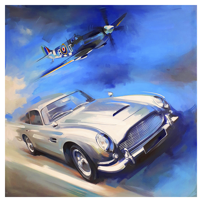 Gio-Spitfire et Aston Martin-aviation-wingartgallery-print-art-aviationart-celine gio manetta-800