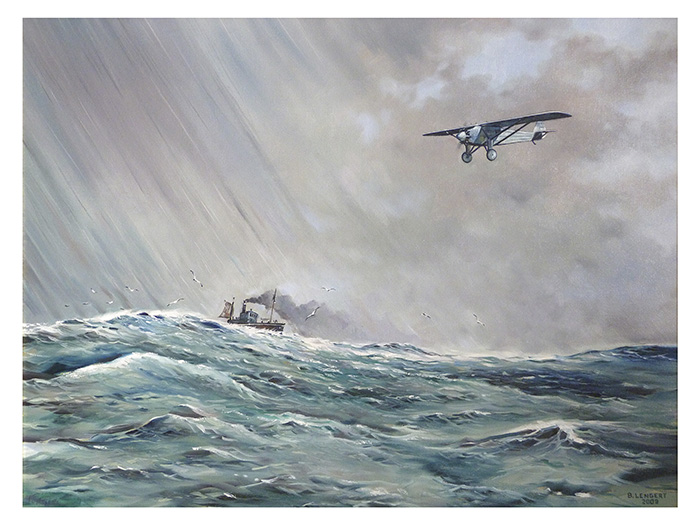 Les 20 et 21 mai 1927, Charles Lindbergh relie New-York à Paris par un vol sans escale en traversant l’océan Atlantique à bord de son avion monomoteur Ryan-NY-P baptisé « Spirit of St.Louis ». Il réalise cet exploit en solitaire luttant contre le froid et la fatigue, à bord de son appareil dépourvu de visibilité vers l’avant, volant la plupart du temps au ras des flots. Ce vol historique a duré 33 heures et 30 minutes !