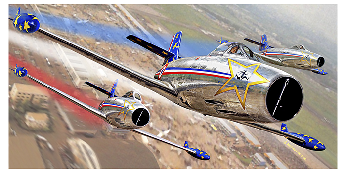 MD450 Ouragan Patrouille de France au-dessus du Bourget