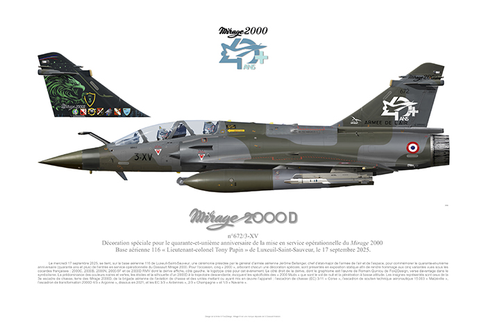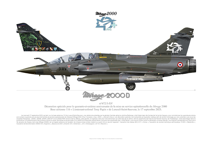 Dassault Mirage 2000D Décoration spéciale 41ème anniversaire de la mise en service opérationnel du Mirage 2000 avec texte explicatif