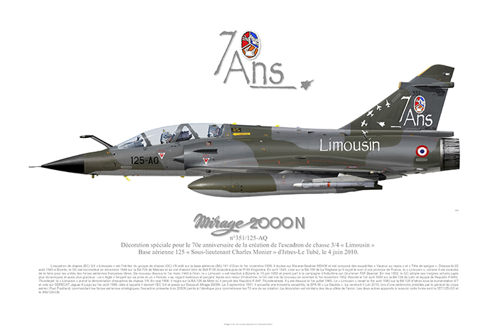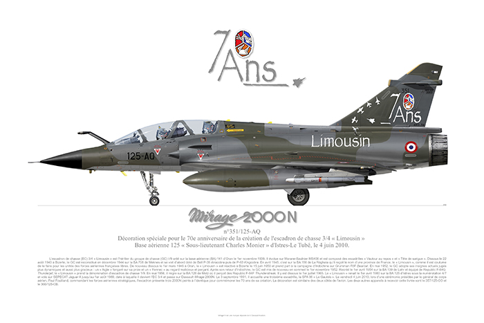 Dassault Mirage 2000N Décoration pour le 70ème anniversaire de la création de l’escadron de chasse 3/4 « Limousin » avec texte explicatif