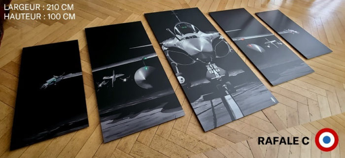 Pièce disponible uniquement sur Alu 3mm avec un profilé de suspension alu : le tableau accroché est à 6mm du mur.