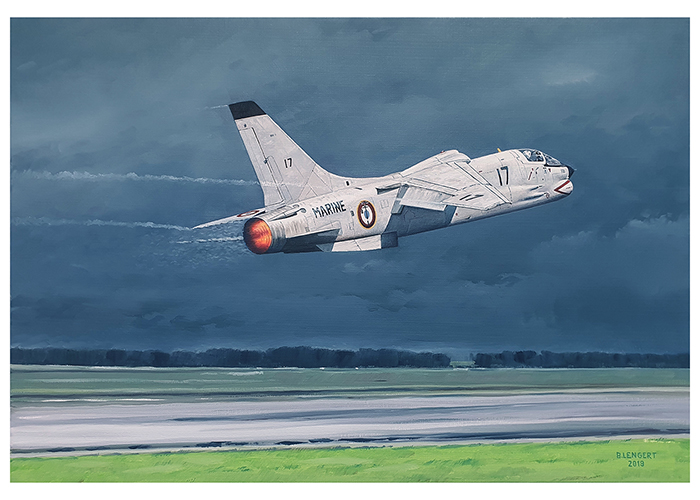 La flottille 12 F accueillera le Crusader, puissant monoréacteur monoplace de chasse embarquée, spécialement modifié pour l’aéronautique navale française, (les portes avions français étant plus petits que leurs homologues américains), en mars 1965.